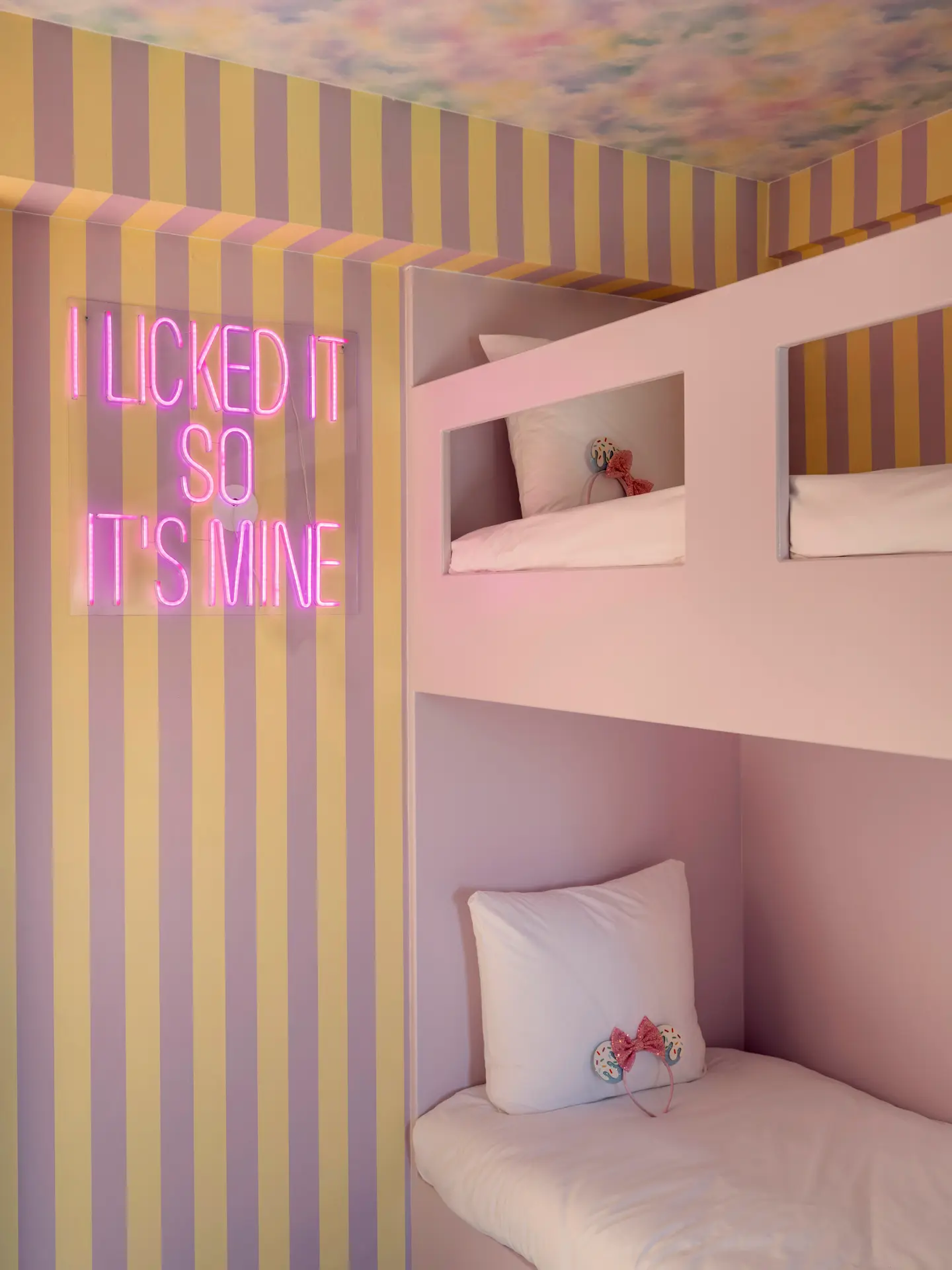 The Ice Cream Room is a pastel universe where playful design meets sleepover nostalgia. Four creative bunk beds are surrounded by soft colors, candy-like details and a dreamy ceiling that feels like melted ice cream skies. It’s cheerful, lighthearted and slightly surreal in the best possible way. A room designed for laughter, late-night chats and memories that feel as sweet as the name suggests.