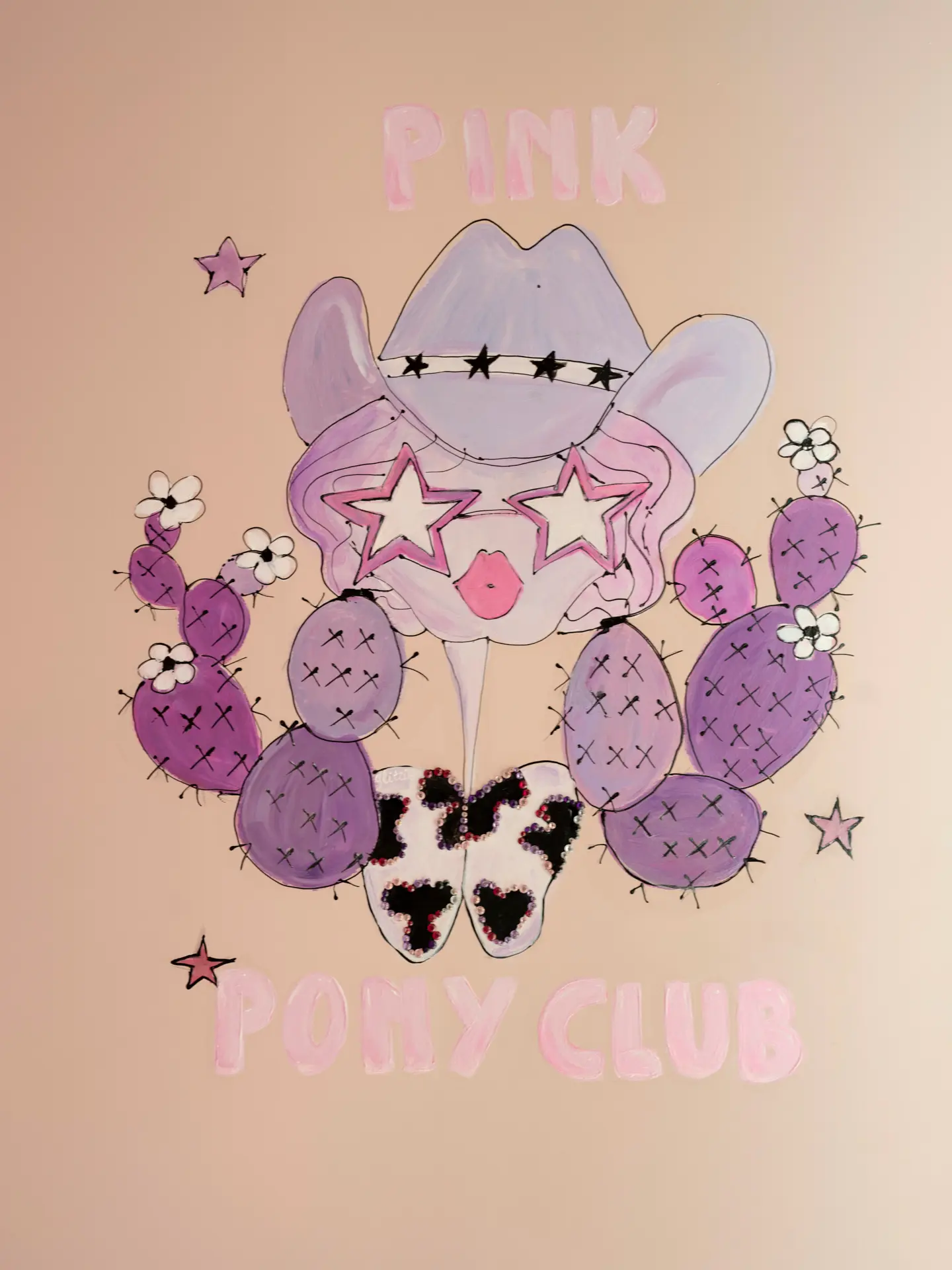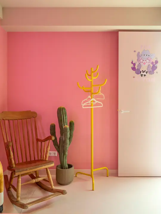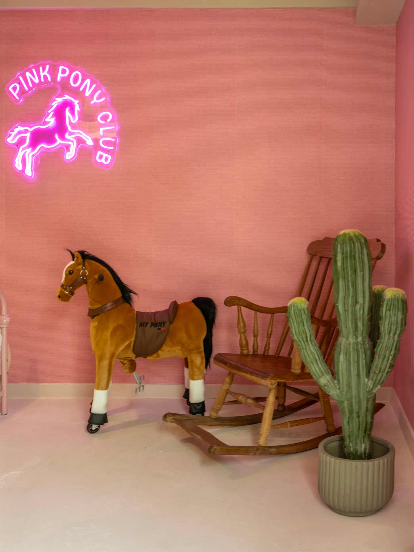 Welcome to the Pink Pony Club. A playful mix of vintage charm and neon energy where glitter meets attitude. Two single beds sit beneath the glowing Pink Pony Club sign while framed moments and retro details give the room its own cheeky personality. It feels like stepping into a late-night story where disco energy never really disappears.
